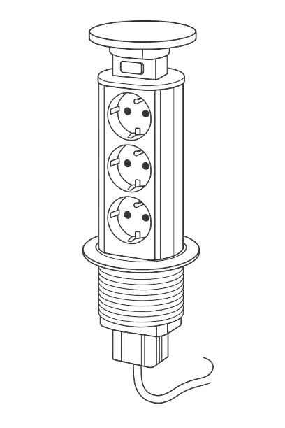Výsuvný blok se zásuvkami pro kuchyňské linky nebo pracovní desky v kanceláři či dílněelegantně schovaný, vysune se pouze v případě potřeby a nezabírá zbytečně místozásuvky...