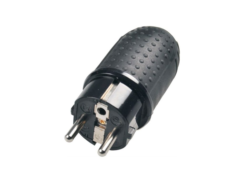 Gumová zástrčka do vlhka IP44, černá – Solight P76