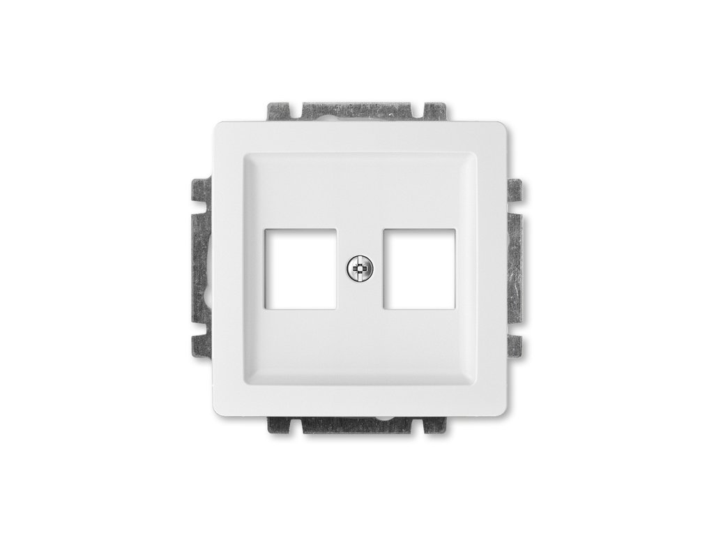 Pro upevnění dvou komunikačních zásuvek typu Modular-Jack (keystone), záslepek nebo reproduktorových svorek (max. doporučená šířka 18,3 mm).