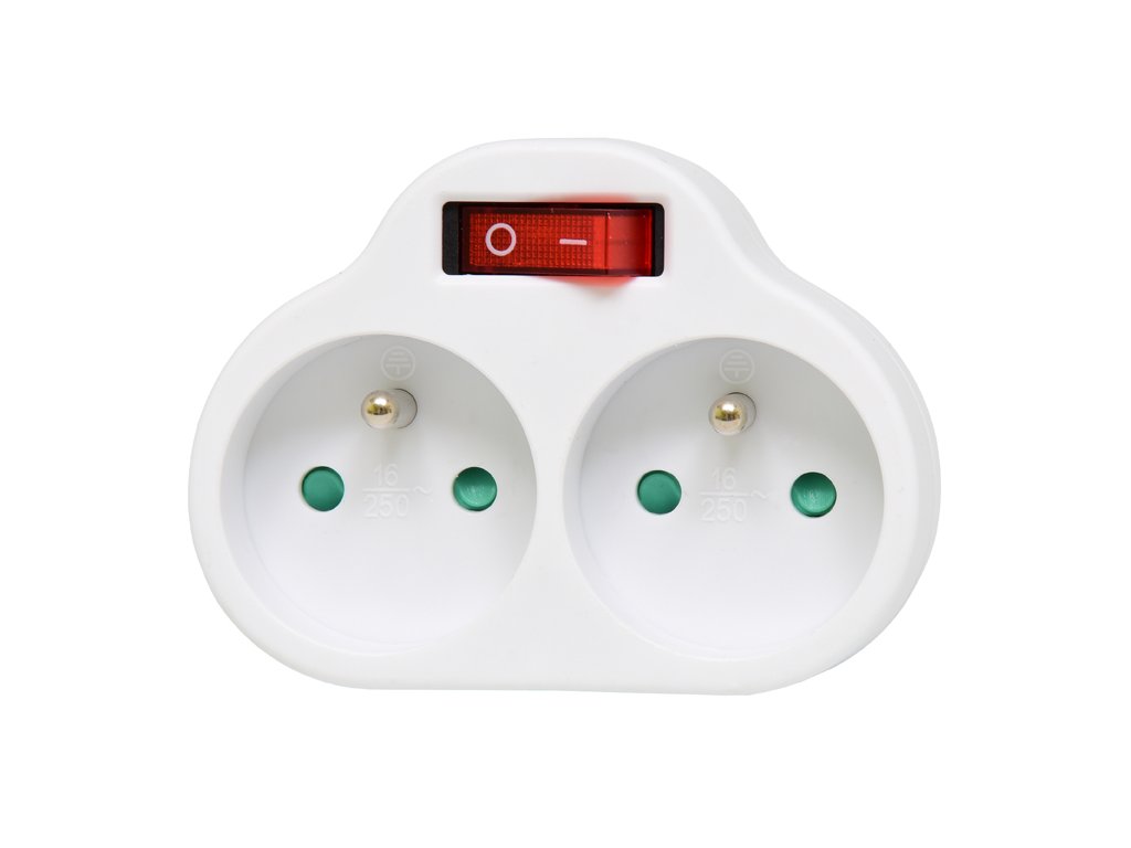 Rozbočovací zásuvka 2× 16A s vypínačem, bílá – Ecolite XKFA-2S