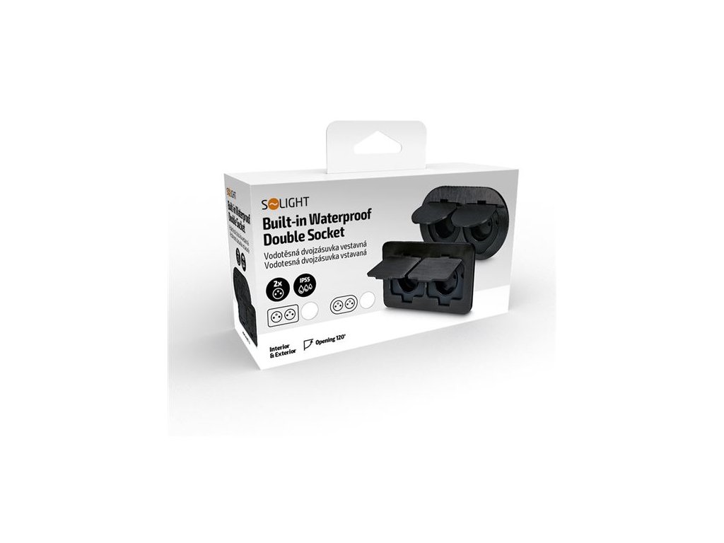 Solight 5B323B - Vodotěsná vestavná dvojzásuvka IP55 -Obdélníkové víko