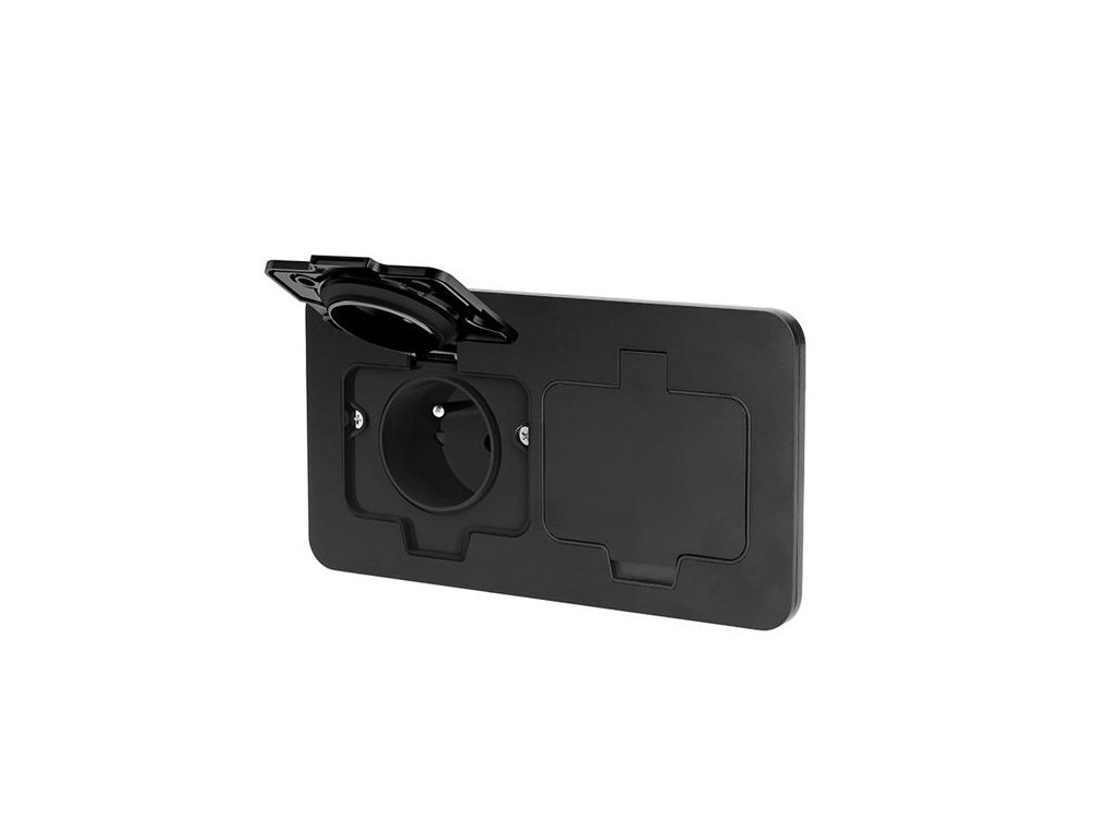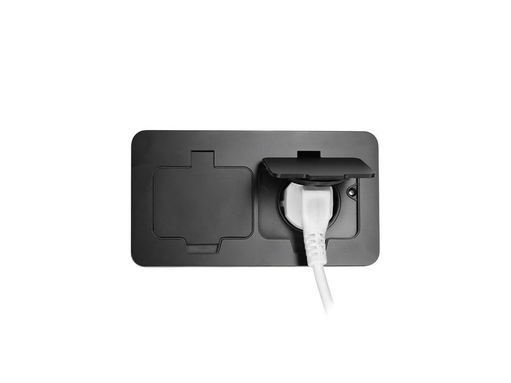 Víčka se otevírají až do úhlu 120°, což zaručuje pohodlnou manipulaci s kabely a dlouhou životnost pantů. Automatické zavírání s pružinou chrání vnitřní část zásuvky, zatímco dětská pojistka přispívá k bezpečnosti v rodinných domácnostech.
