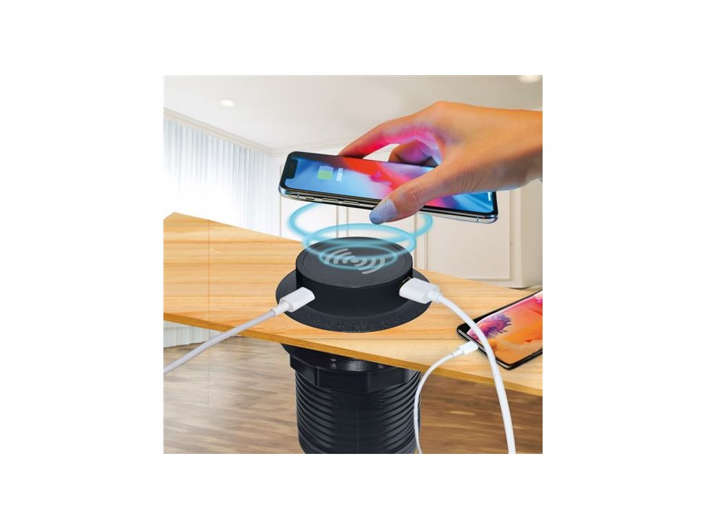 Stačí lehce zatlačit na horní kryt – nabíječka se plynule vysune nad desku a je připravena k použití. Po dokončení ji snadno skryjete zpět – bez prachu, bez kabelů, bez kompromisů.