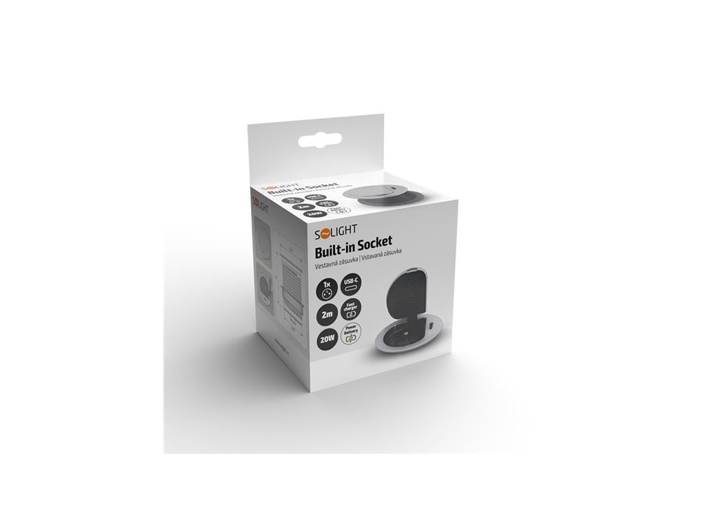 Vestavná zásuvka 230 V, USB-C Power Delivery 20 W, kabel 2 m, stříbrná – Solight PP122C-PD20