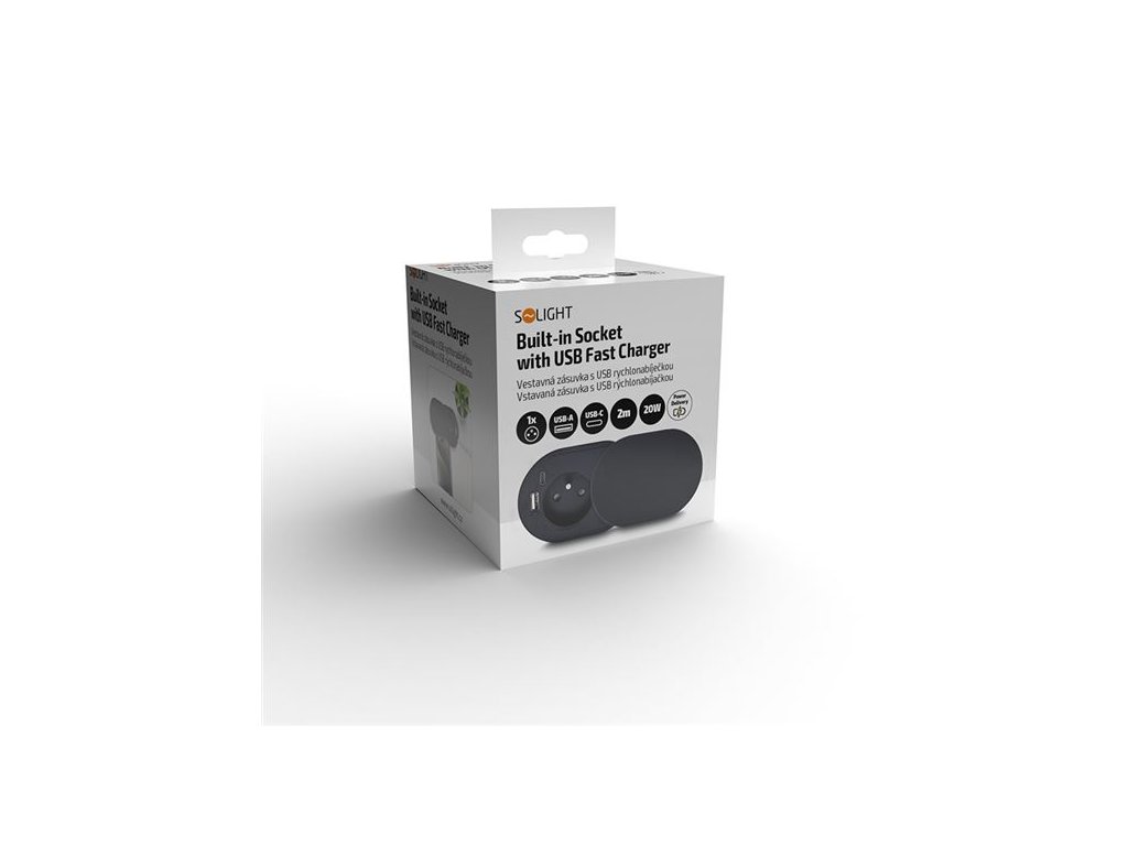 - vestavná elektrická zásuvka pro pracovní desky a stoly s USB rychlonabíječkou