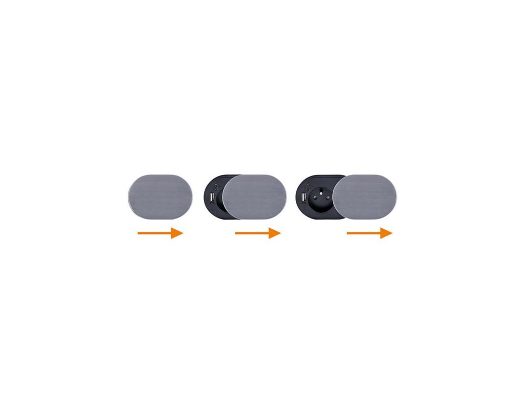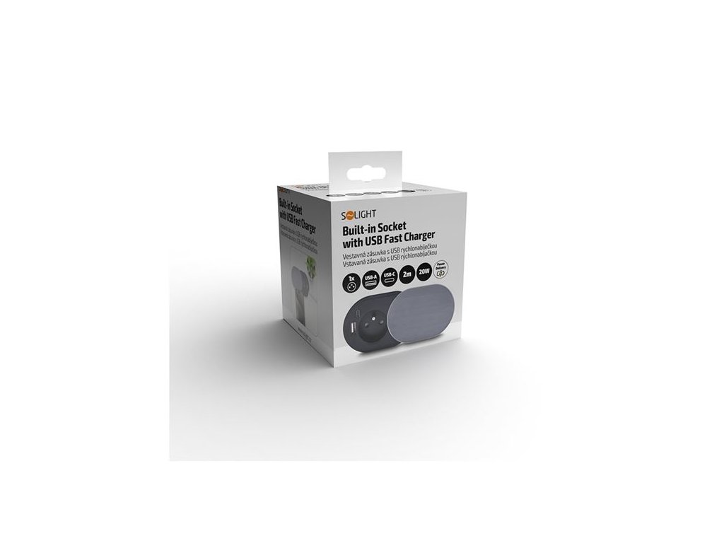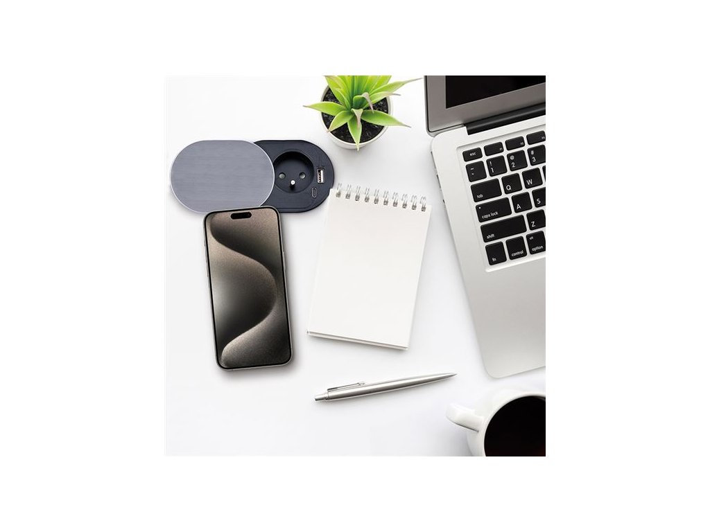 - vestavná elektrická zásuvka pro pracovní desky a stoly s USB rychlonabíječkou