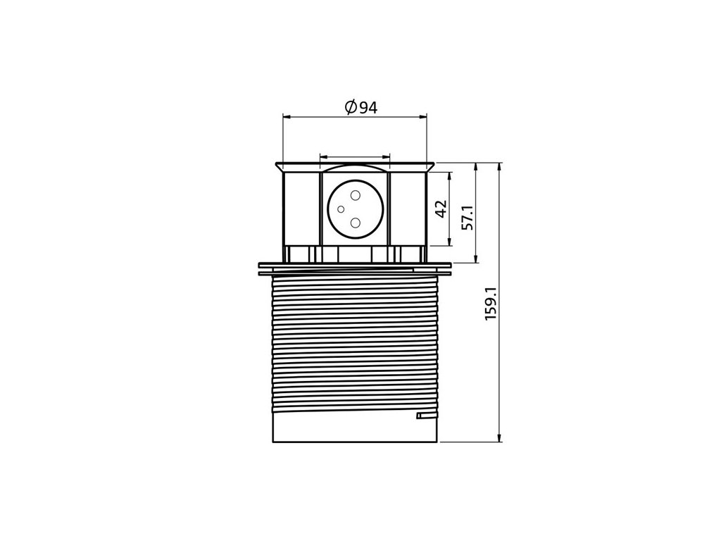 výška výsuvné části nad stolem: 58mm; výška části pod stolem: 100mm