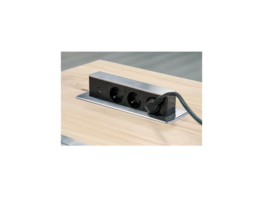 Výsuvný zásuvkový blok 3x 230 V, USB-A, USB-C, 2 m, nerez – Solight PP126USBC