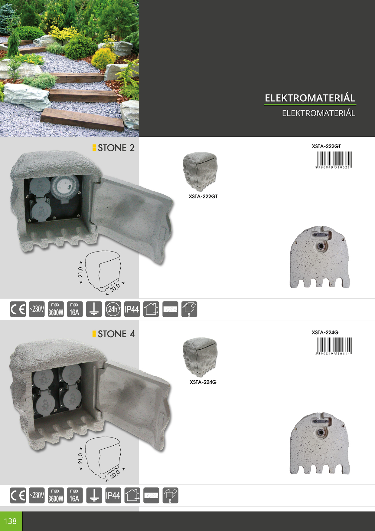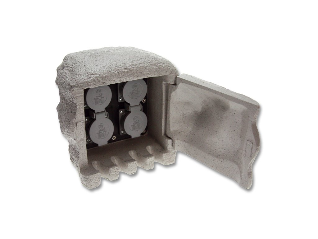 Zahradní kamenný sloupek 4 zásuvky, 230V, IP44, šedý - Ecolite STONE XSTA-224G
